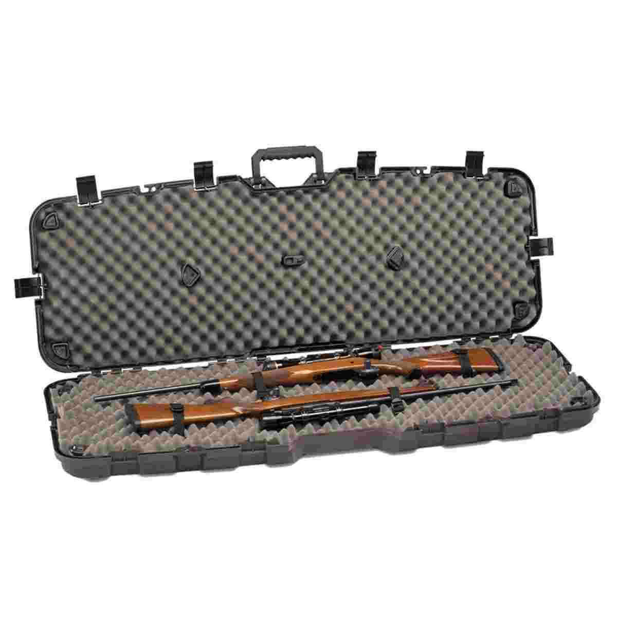 This case uses the patented PillarLock® which adds crush-resistant strength to the case. It will hold two scoped rifles with large objective lenses. Thick walled construction heavy-duty latches molded-in handles and padlock tabs round out the features.
