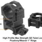-High quality max strength QD twist lock Picatinny/Weaver rings & flip-open lens caps